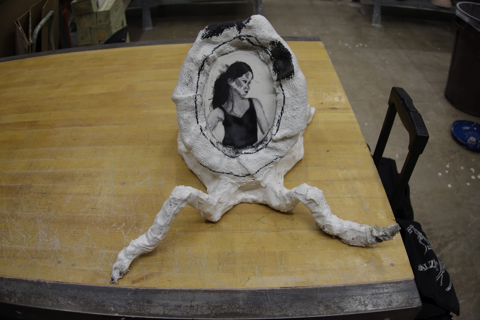 4/25/17: Canvas work was done. Molding paste was added to the wings in order to fix some flaws that were made during the piece's initial development. |